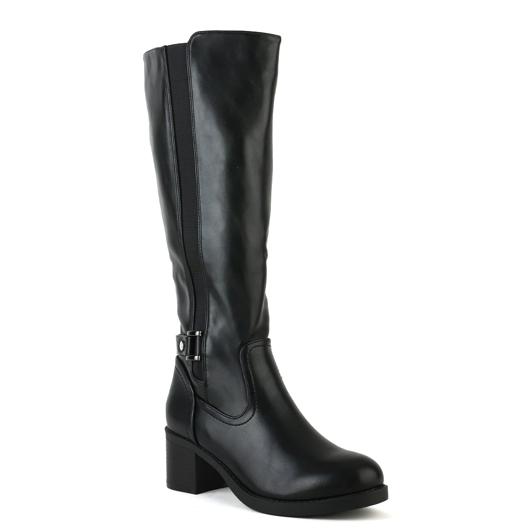 Μαύρη γυναικεία μπότα ιππασίας με διακοσμητικό