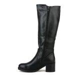 Μαύρη μπότα με εσωτερικό φερμουάρ και λάστιχο για πανεύκολη χρήση. Το υλικό της είναι ματ τεχνόδερμα πλήρως αδιάβροχο. Η φόρμα της είναι κανονική οπότε επιλέγουμε κανονικά το νούμερο μας. Το ύψος της στην γάμπα είναι στους 32 πόντους. Η σόλα της είναι από θερμολάστιχο, στους 5 πόντους πίσω και 1 μπροστά, με αποτέλεσμα να είναι πολύ ελαφριά και άνετη στο περπάτημα.