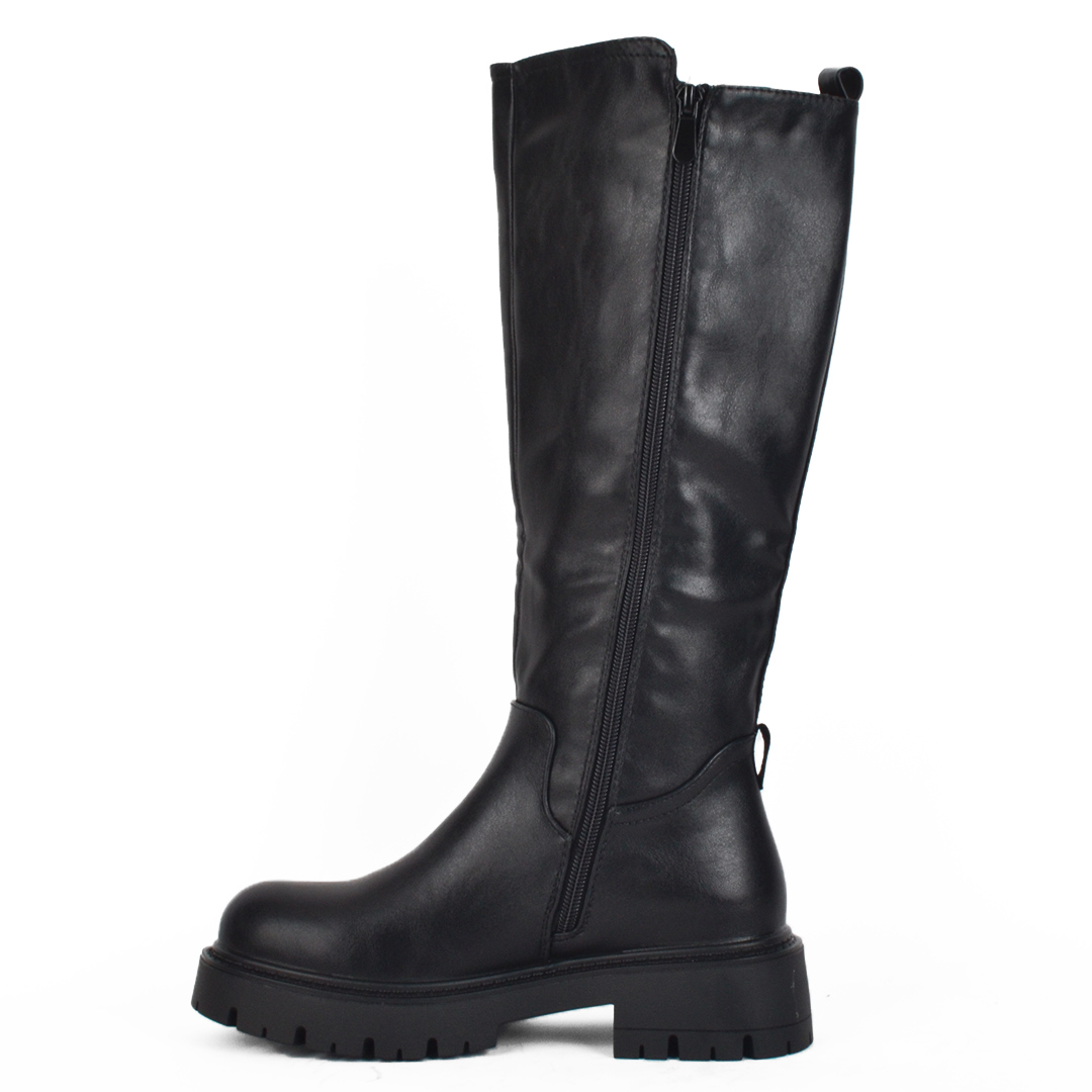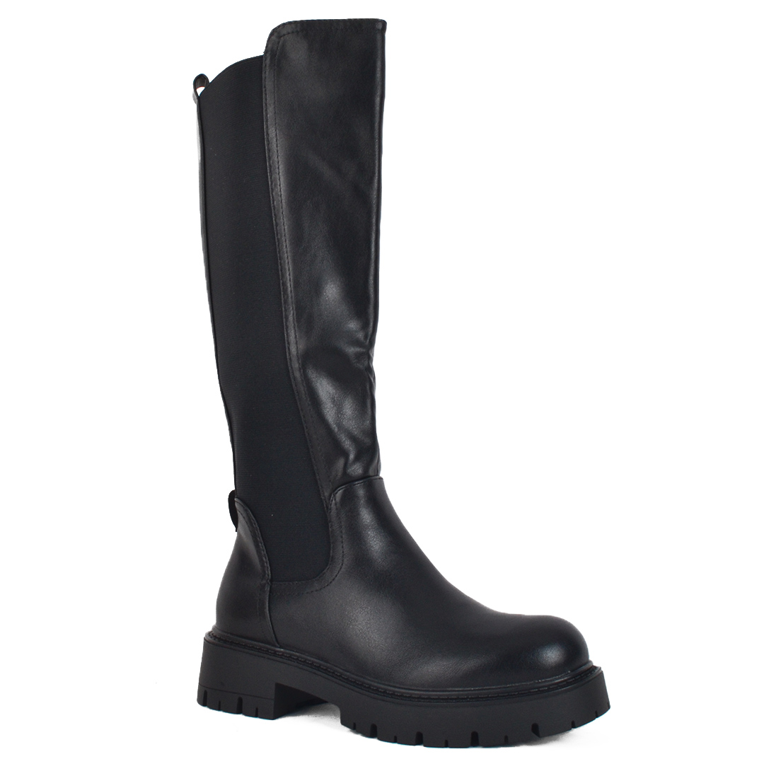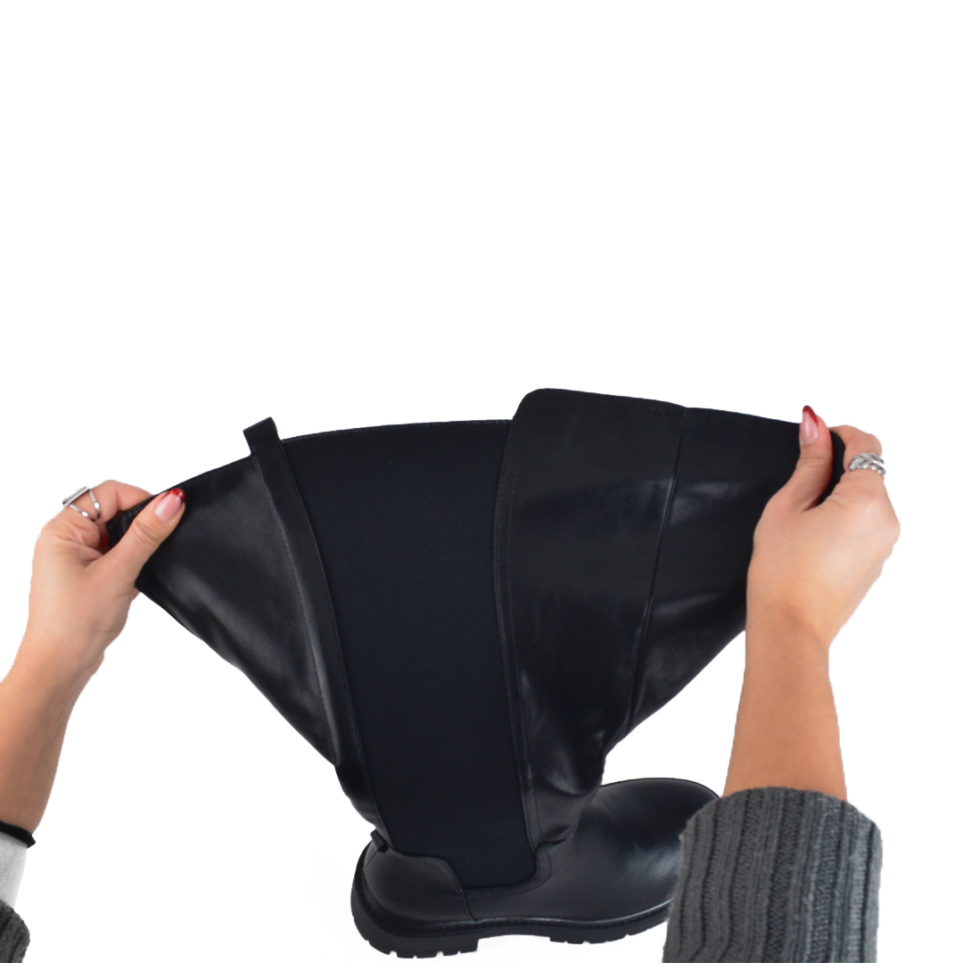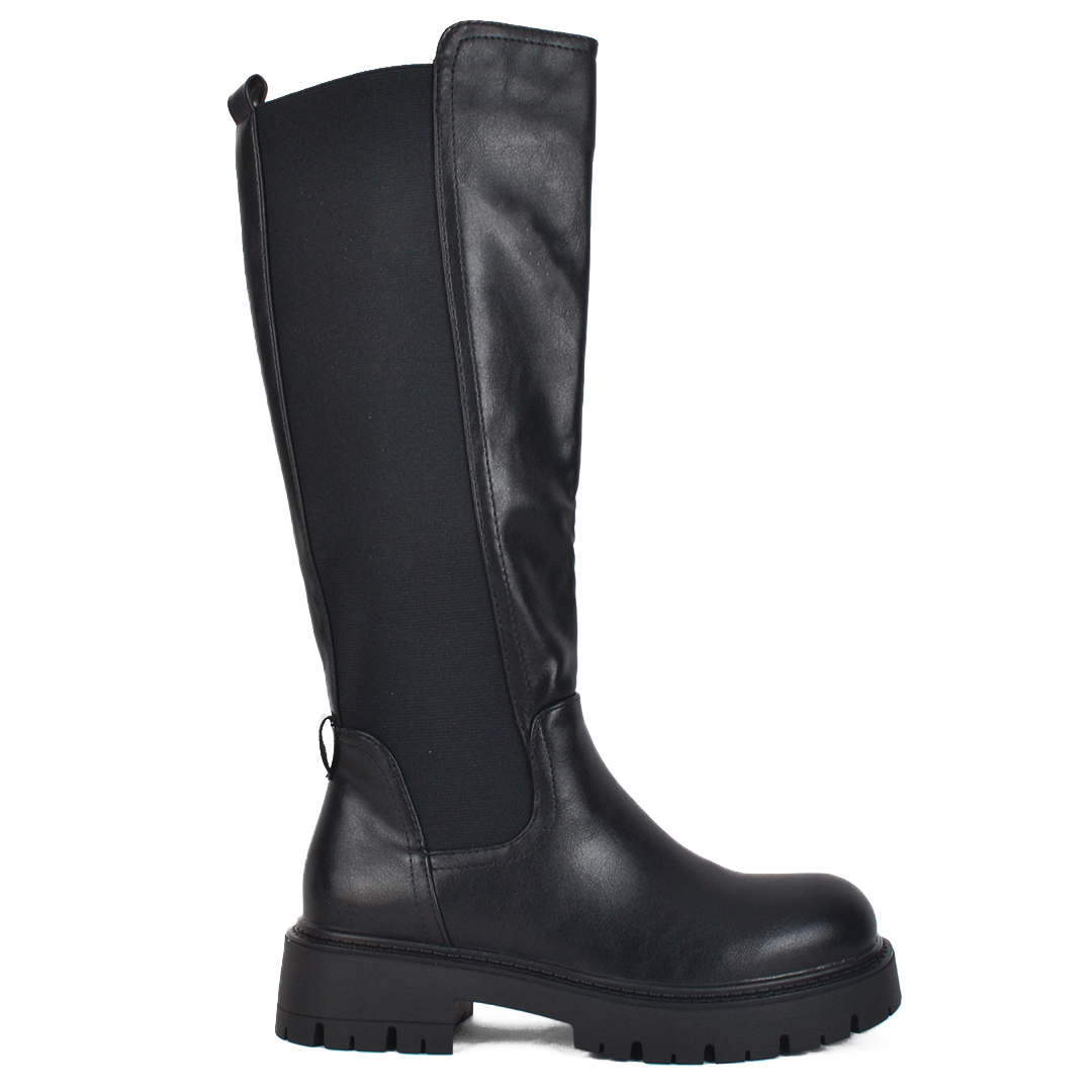 Μαύρη γυναικεία μπότα με φαρδύ λάστιχο στην γάμπα