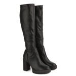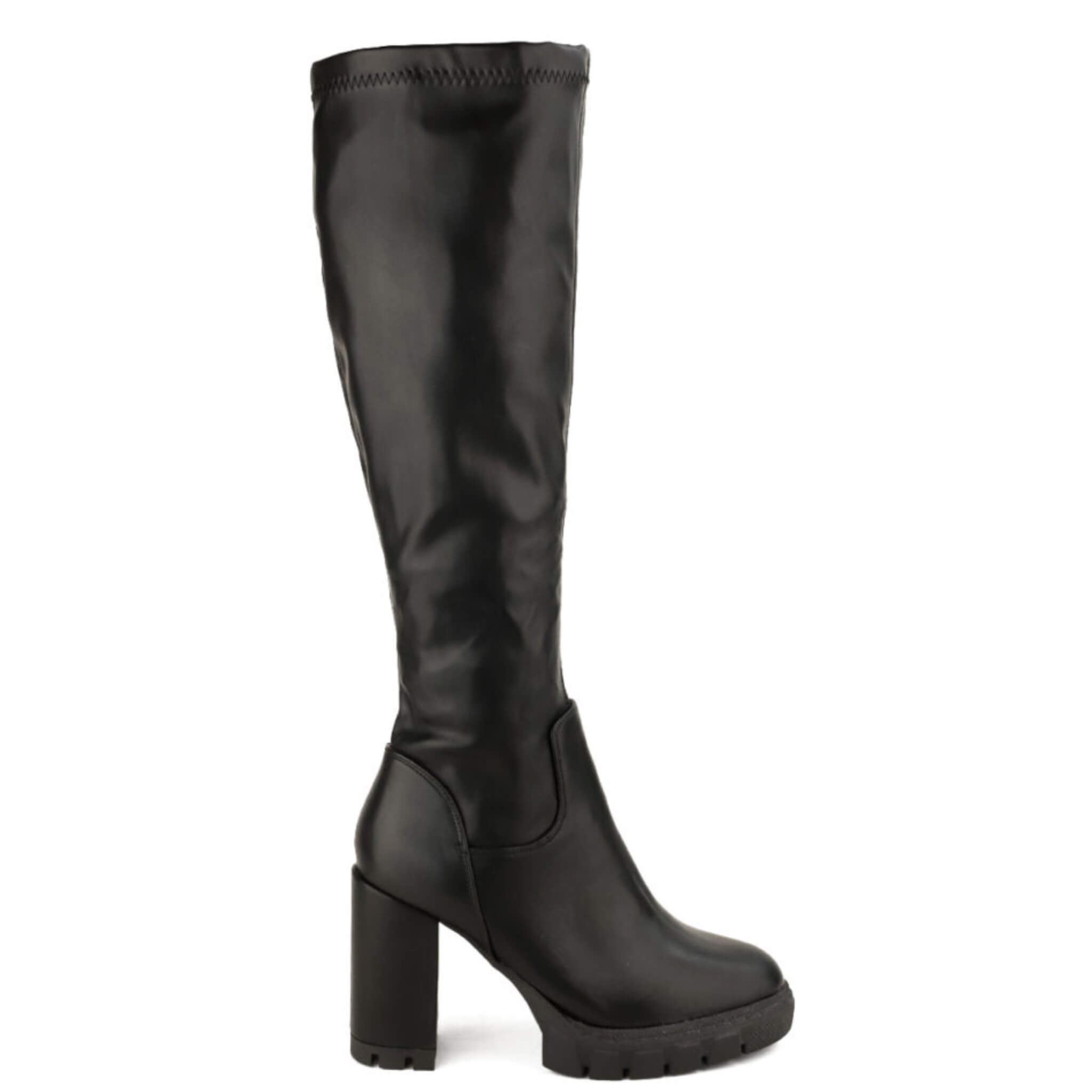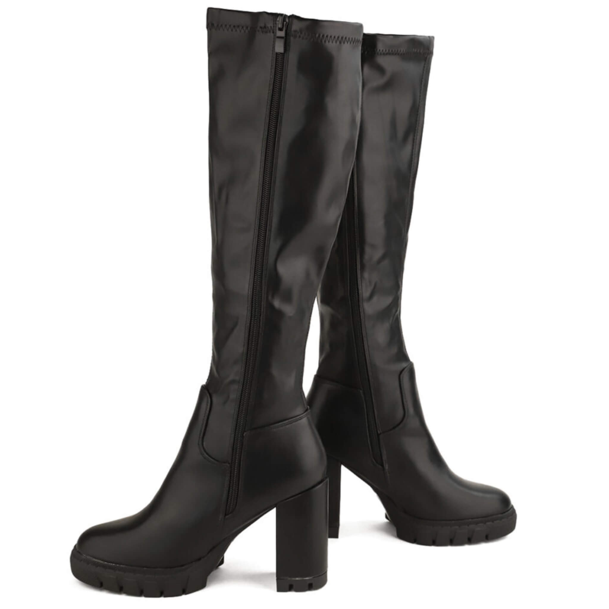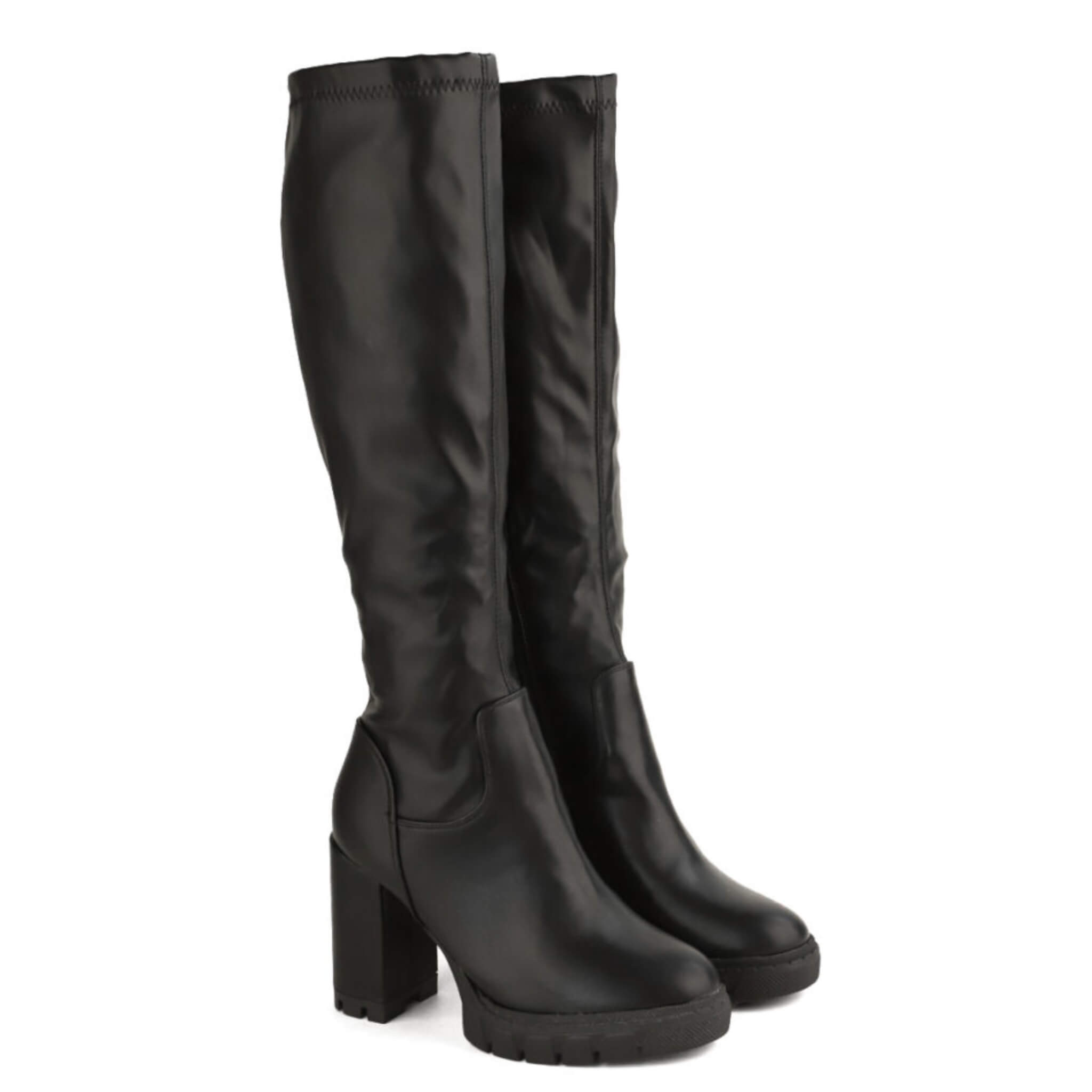 Μαύρη γυναικεία ελαστική μπότα με τακούνι και τρακτερωτή σόλα