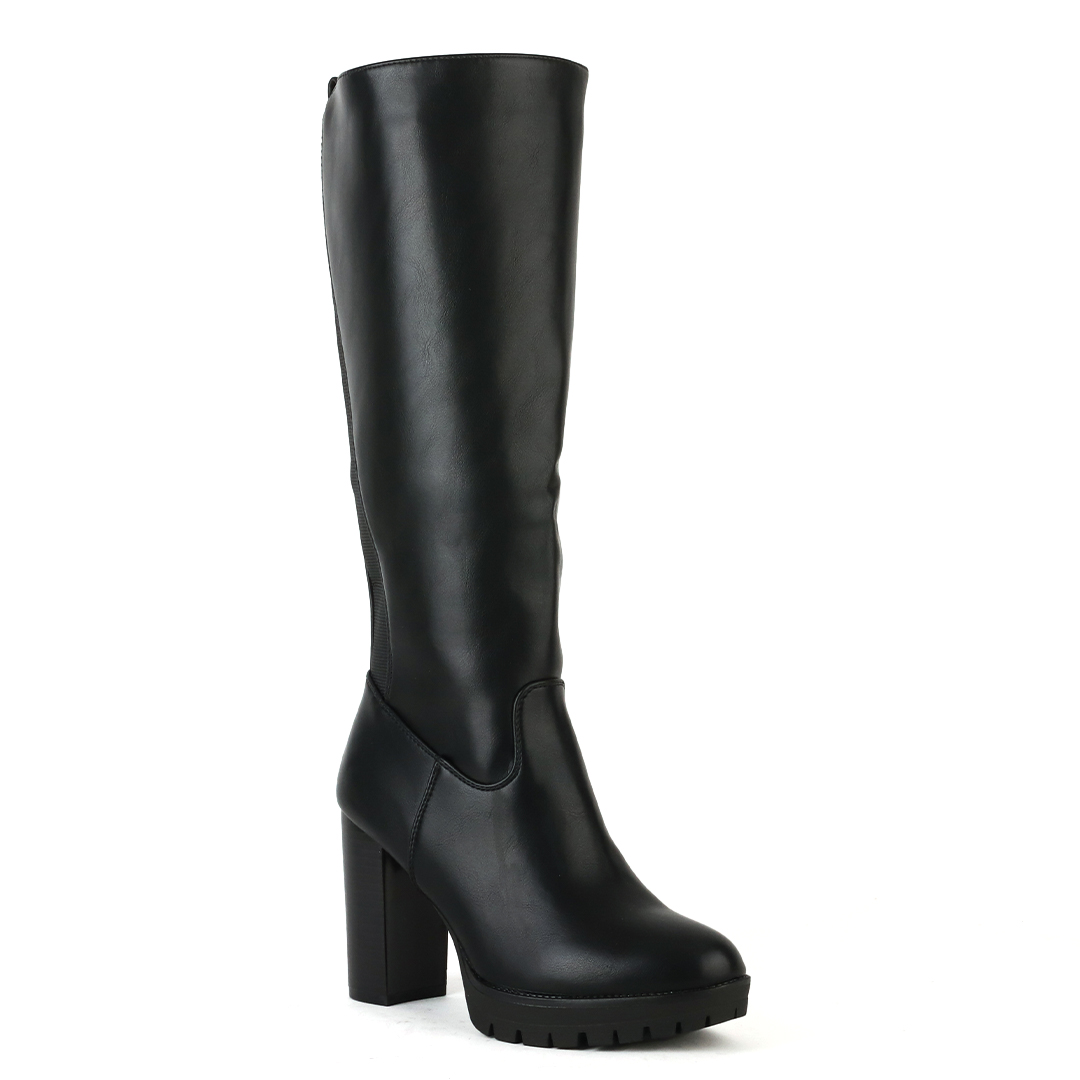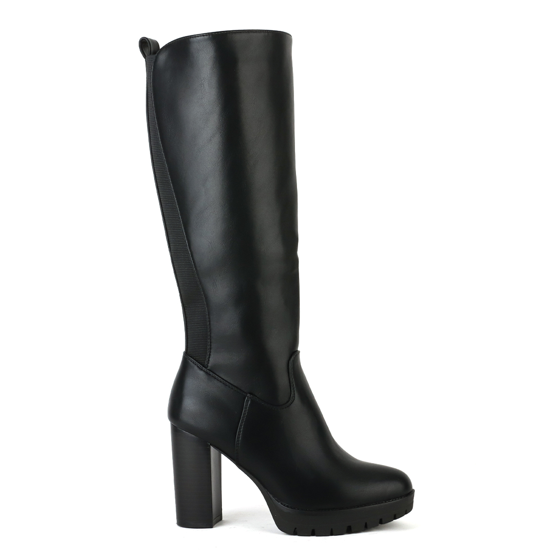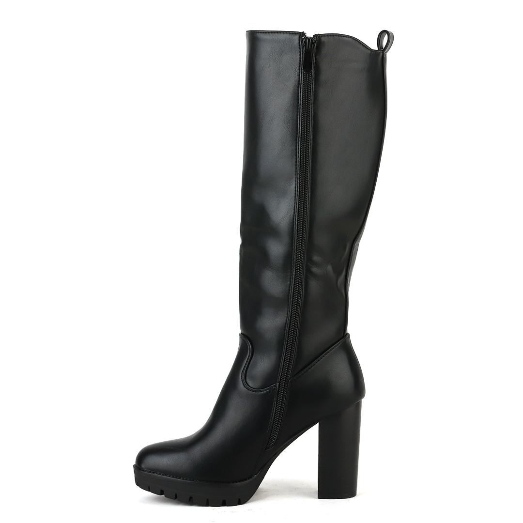 Μαύρη γυναικεία μπότα με τακούνι. Το υλικό της είναι ματ τεχνόδερμα πλήρως αδιάβροχο. Η φόρμα της είναι κανονική οπότε επιλέγουμε κανονικά το νούμερο μας. Το ύψος του τακουνιού είναι στους 9 πόντους με φιάπα μπροστά 2 πόντων.