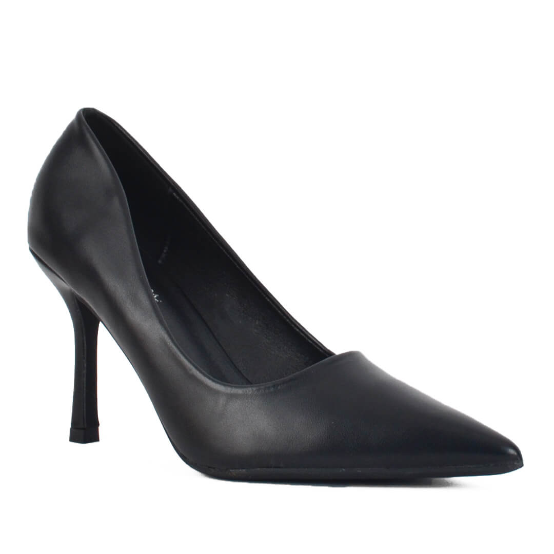 Μαύρη γυναικεία μυτερή γόβα με λεπτό τακούνι