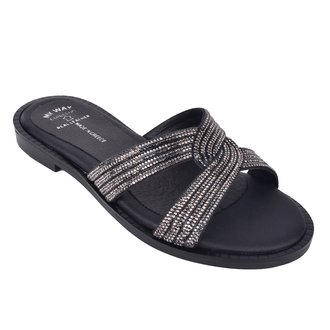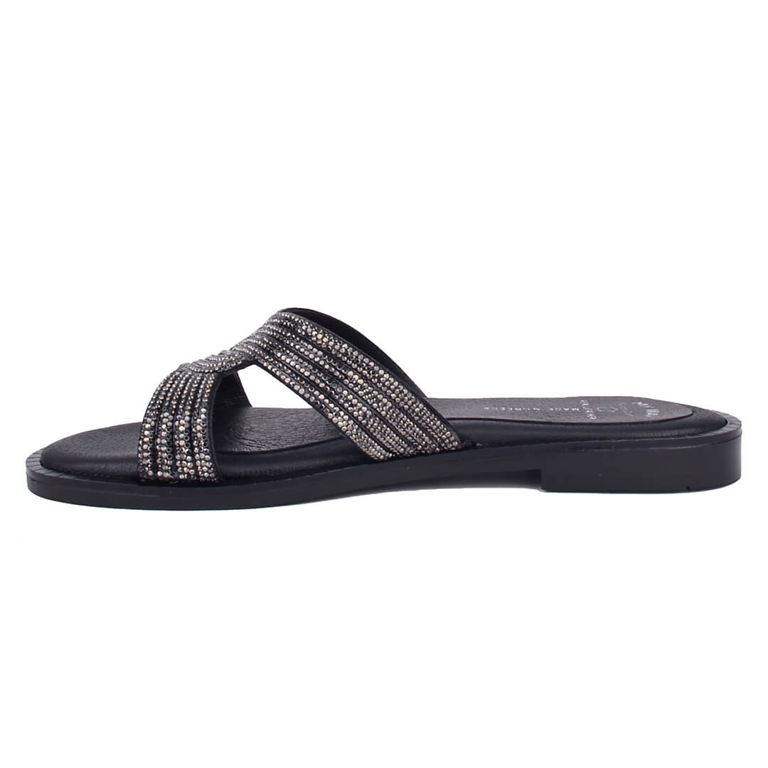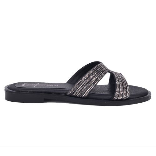 Αρχική σελίδα Παπούτσια Flats Μαύρη γυναικεία παντόφλα με strass κόμπο