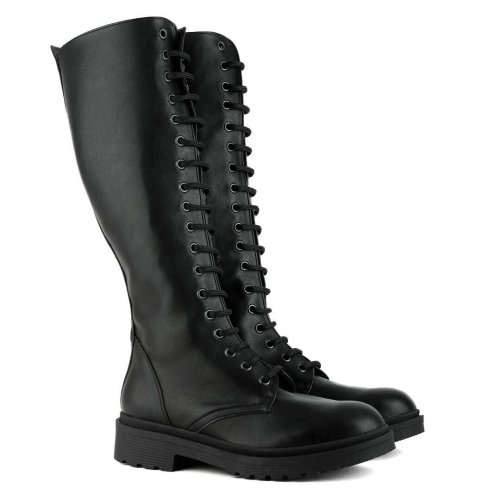 Mαύρη γυναικεία ψηλή μπότα με κορδόνια