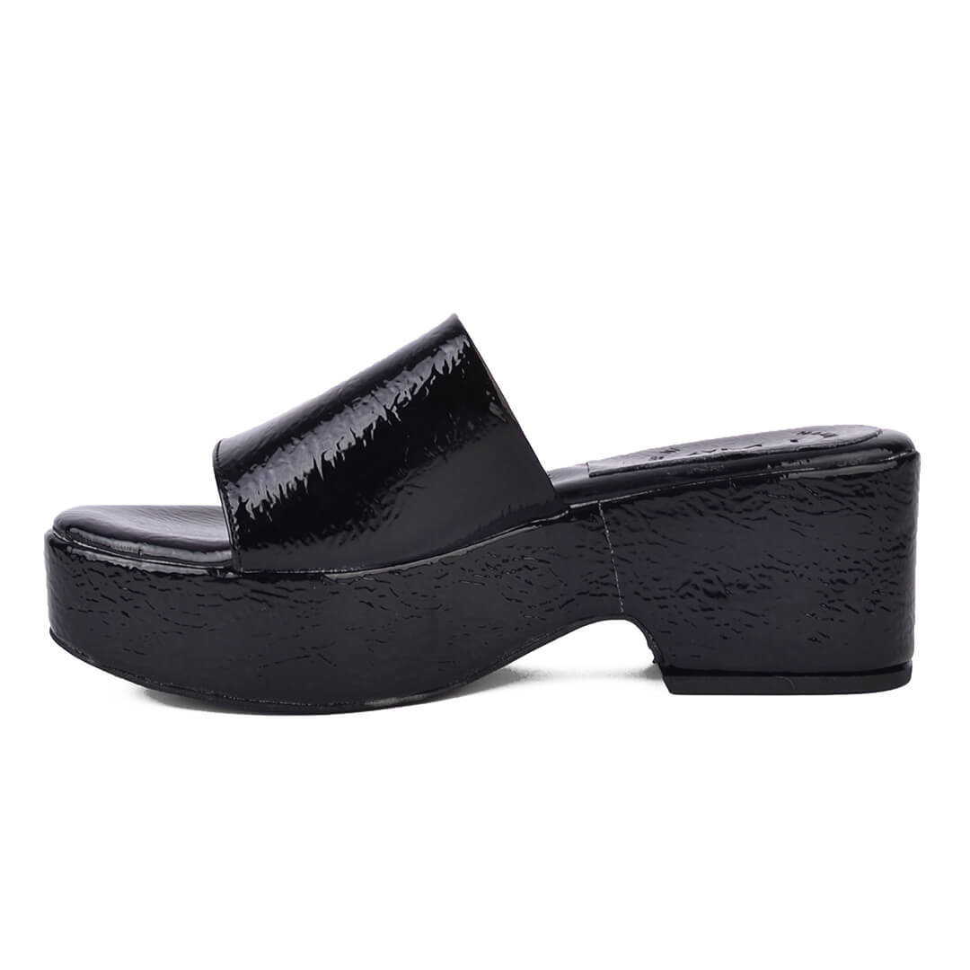 Μαύρη λουστρίν γυναικεία παντόφλα