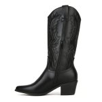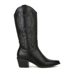 Μαύρη γυναικεία cowboy μπότα με τακούνι. Το υλικό της είναι ματ τεχνόδερμα πλήρως αδιάβροχο. Η φόρμα της είναι κανονική οπότε επιλέγουμε κανονικά το νούμερο μας. Το ύψος του τακουνιού είναι στους 5,5 πόντους. Η σόλα τους είναι από θερμολάστιχο, με αποτέλεσμα να είναι πολύ ελαφριά και με μαλακό πάτημα. Ιδανική επιλογή για όλη την ημέρα.