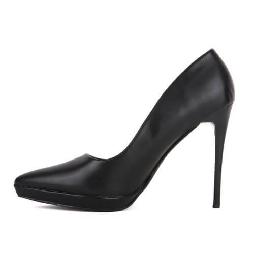 Γυναικεία μυτερή μαύρη ματ γόβα. Το τακούνι της είναι στα 10 εκατοστά με 1 εκατοστό φιάπα μπροστά. Η φόρμα της είναι κανονική και την επιλέγουμε κανονικά στο νούμερο μας. Ιδανική για chic εμφανίσεις.