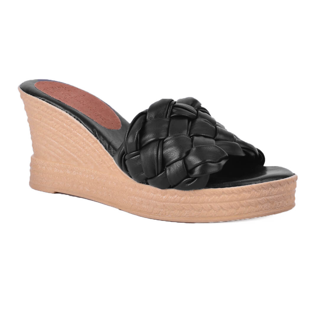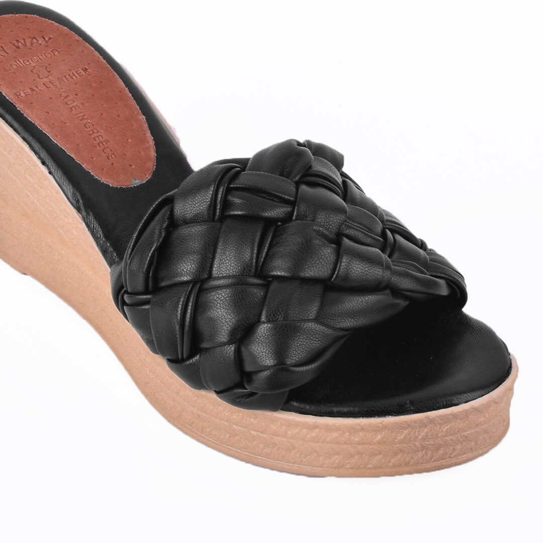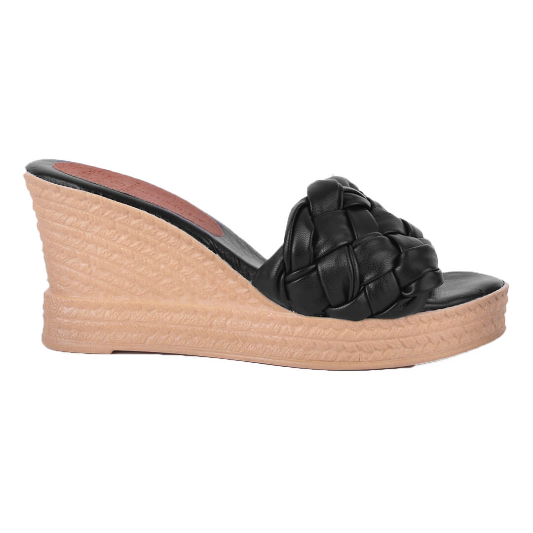 Μαύρη ψηλή παντόφλα με πλεξούδα