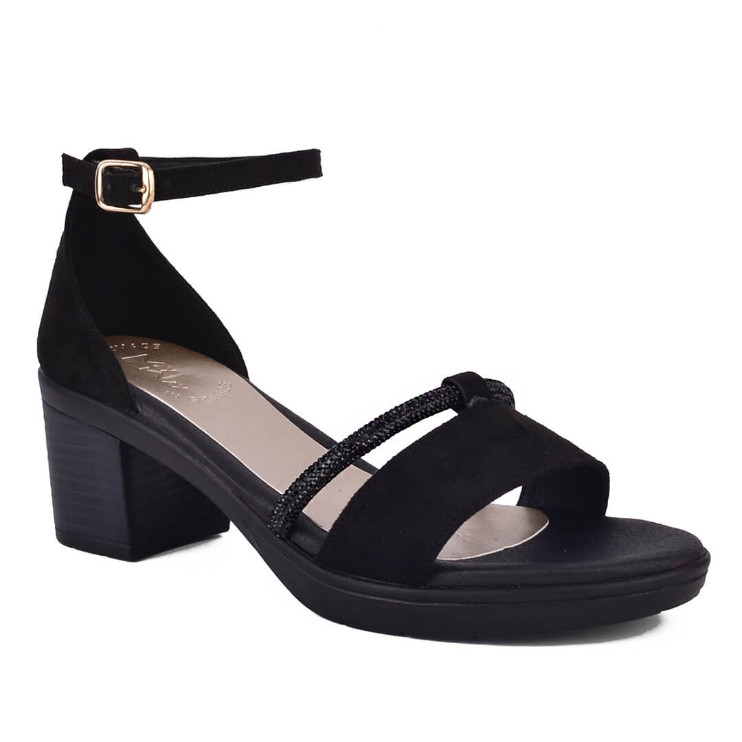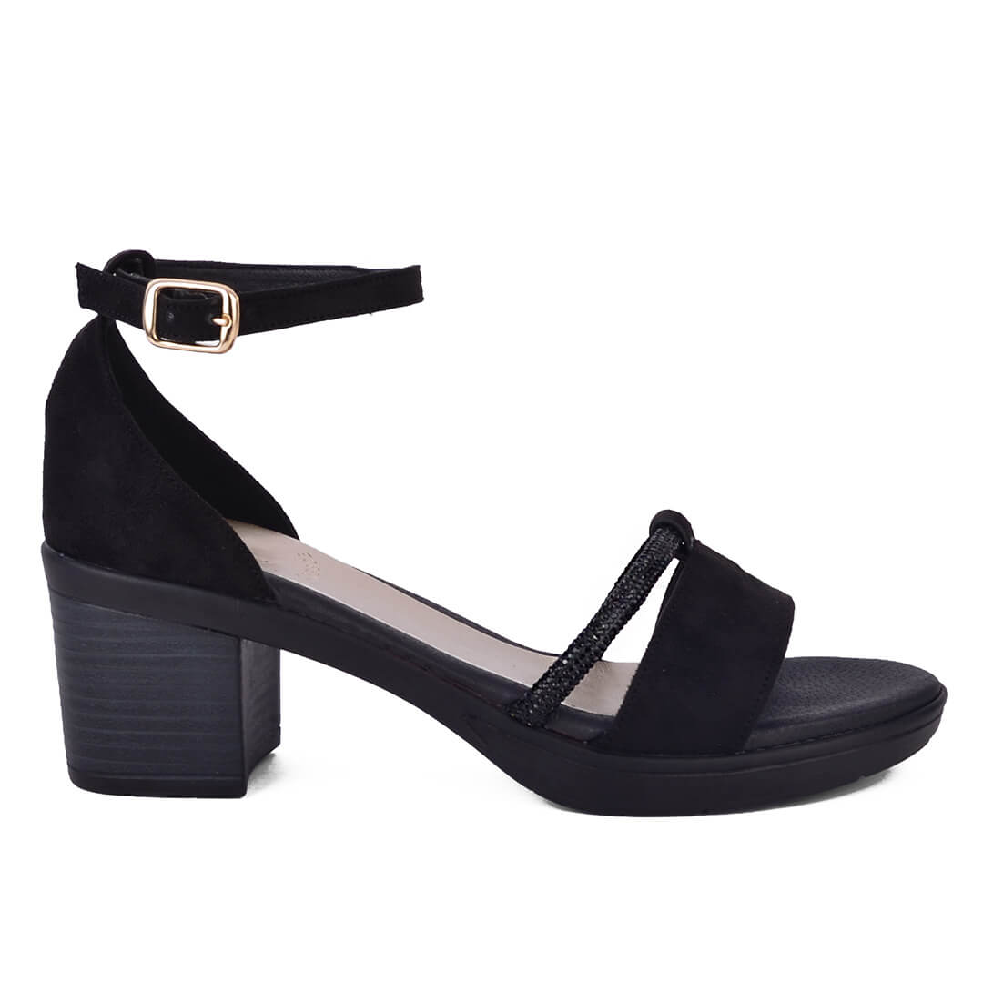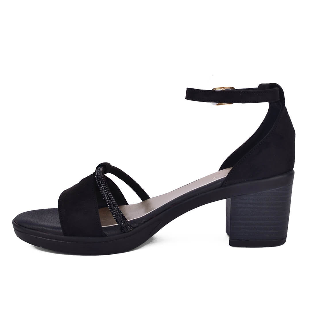 Μαύρο ανατομικό πέδιλο με strass λεπτομέρεια