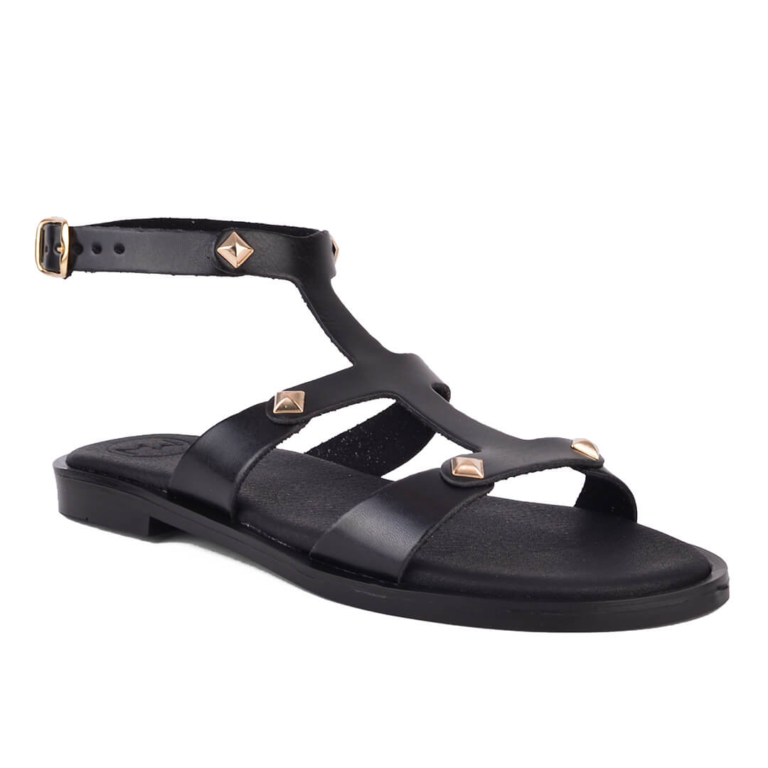 Μαύρο flat πέδιλο με διακοσμητικά τρουκ