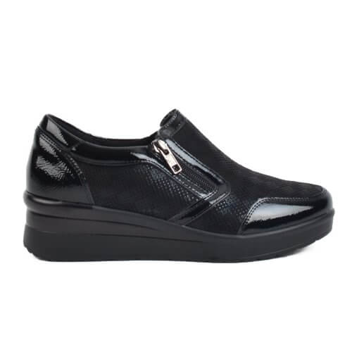Αρχική σελίδα Παπούτσια Comfort/Ανατομικά Μαύρο γυναικείο ανατομικό με λάστιχο στο κουτεπιέ και φερμουάρ