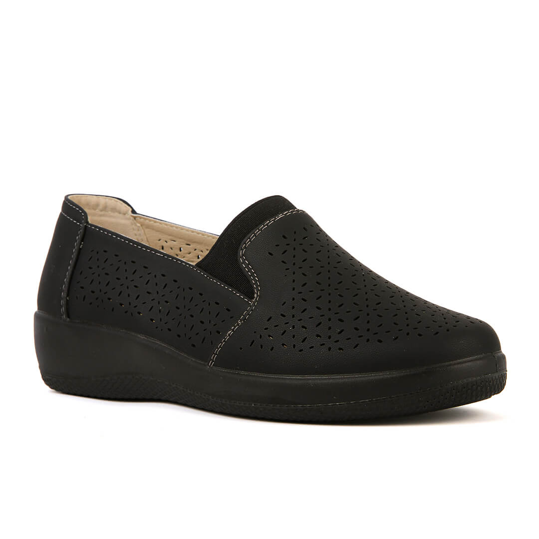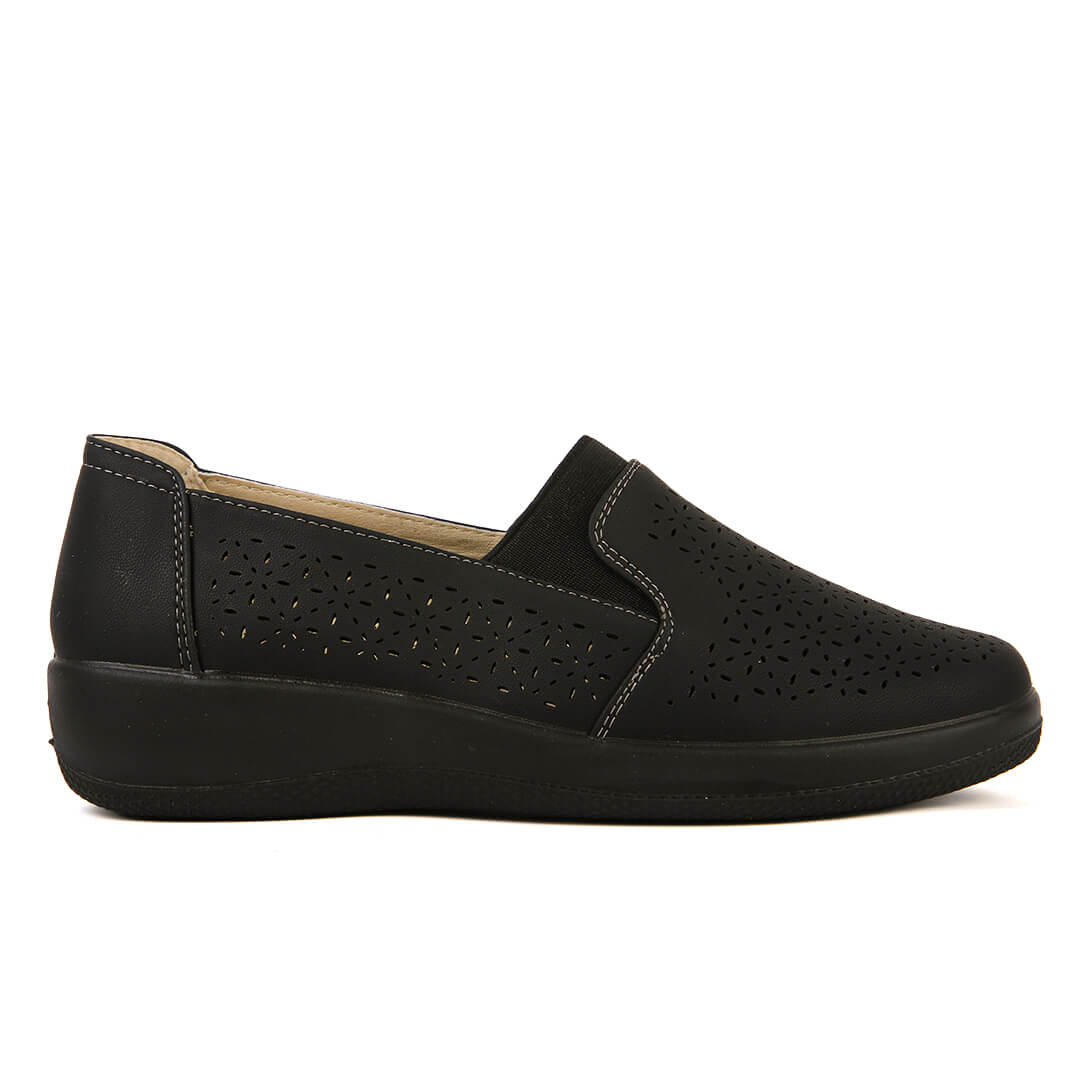 Μαύρο γυναικείο ανατομικό παπούτσι με λάστιχο στο κουτεπιέ.
