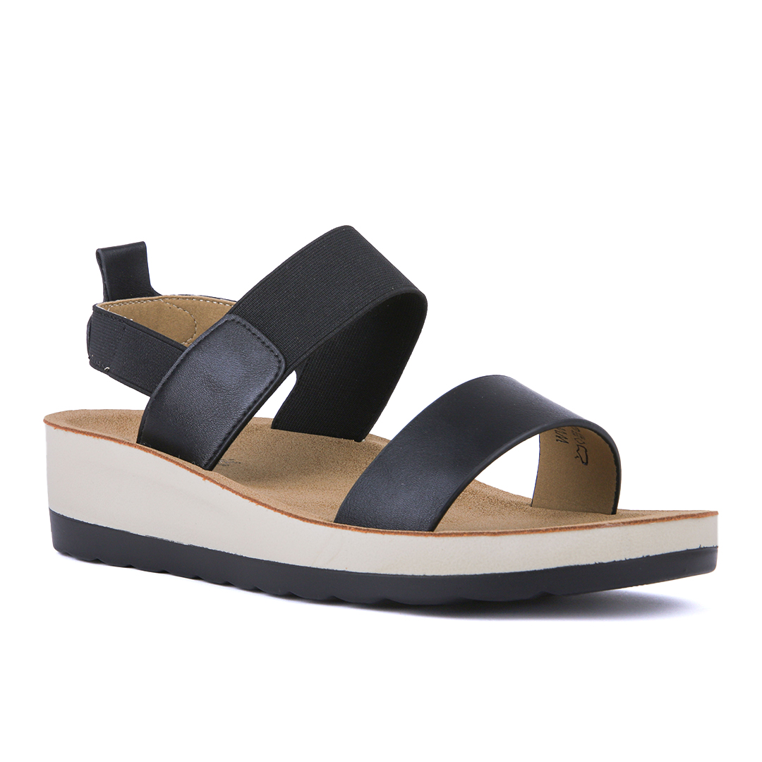 Μαύρο γυναικείο ανατομικό πέδιλο με λάστιχο στο κουτεπιέ