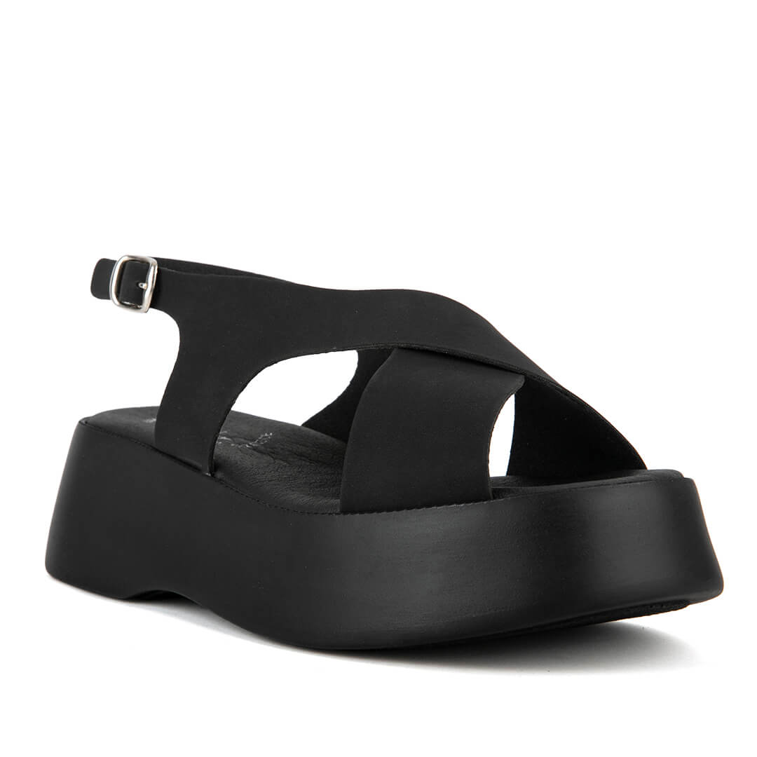 Αρχική σελίδα Uncategorized Μαύρο γυναικείο χιαστί flatform πέδιλο