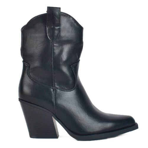 Γυναικείο cowboy μποτάκι με τακούνι. Η φόρμα τους είναι κανονική οπότε πάμε κανονικά στο νούμερο μας. Το υλικό τους είναι ματ τεχνόδερμα ελαστικό, πλήρως αδιάβροχο. Το ύψος του τακουνιού είναι στους 7.5 πόντους. Ιδανικό για βραδινές εμφανίσεις.