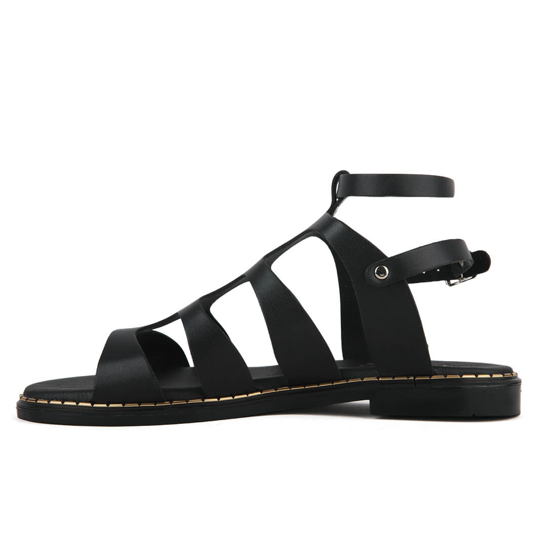 Μαύρο γυναικείο flat πέδιλο με λουράκια