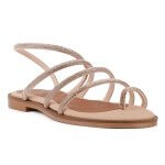 Αρχική σελίδα Παπούτσια Flats Ροζ χρυσό γυναικείο flat πέδιλο με strass.