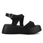 Μαύρο γυναικείο flatform πέδιλο με ασύμμετρο σχέδιο