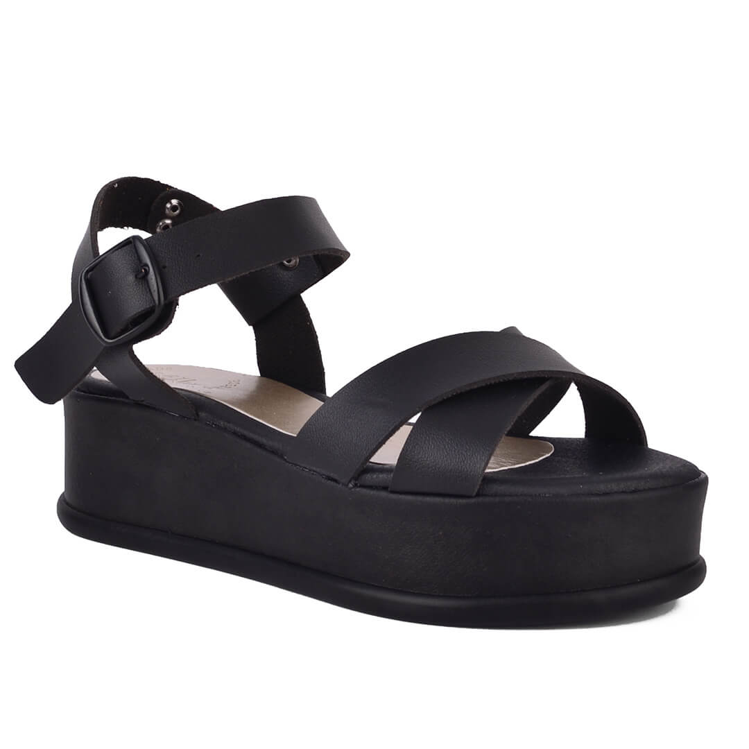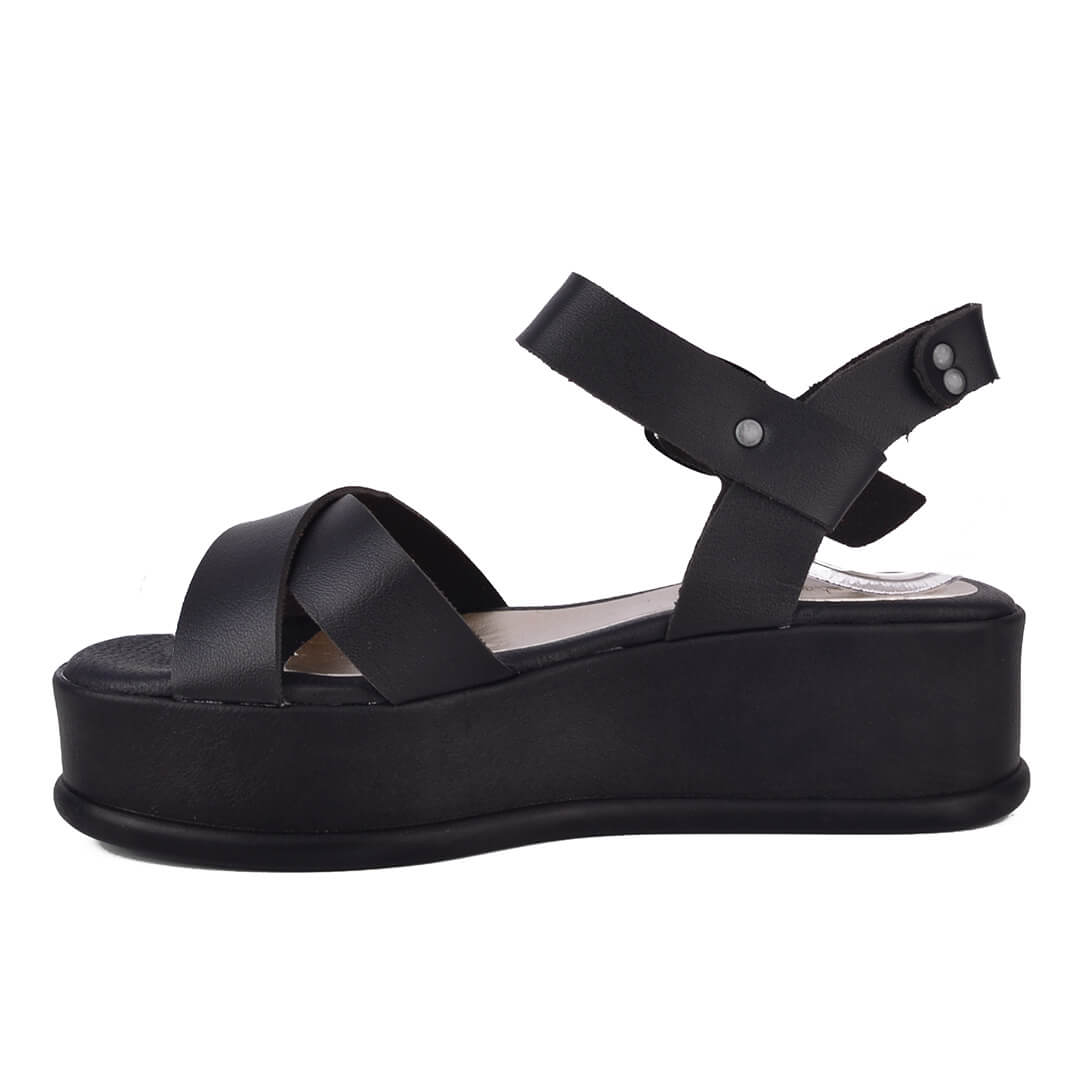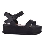 Μαύρο γυναικείο flatform πέδιλο με χιαστί λουράκια