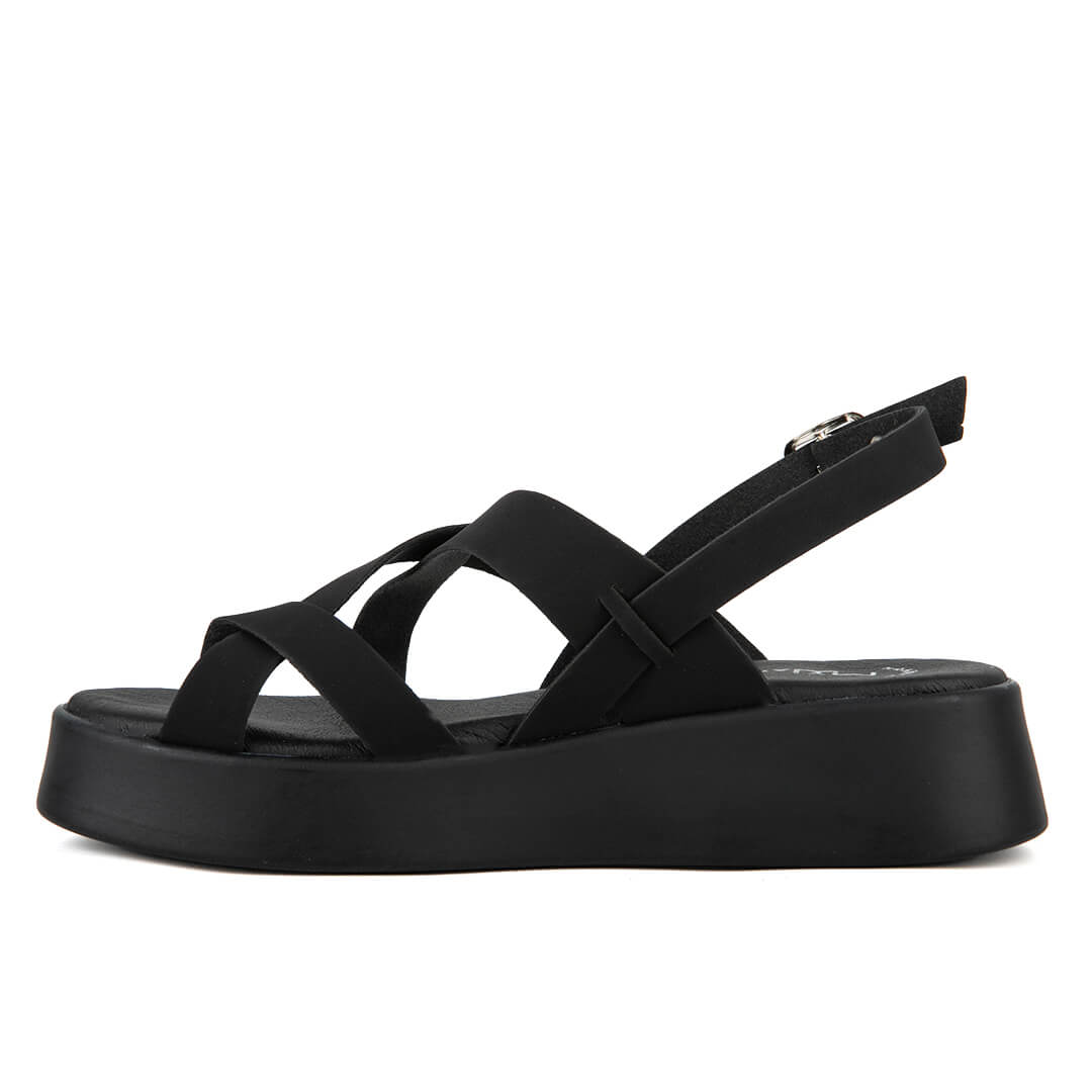 Μαύρο γυναικείο flatform πέδιλο με δάχτυλο
