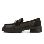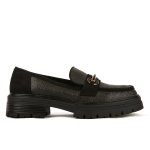 Μαύρο γυναικείο loafer με ψάθα και διακοσμητικό
