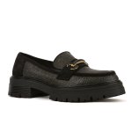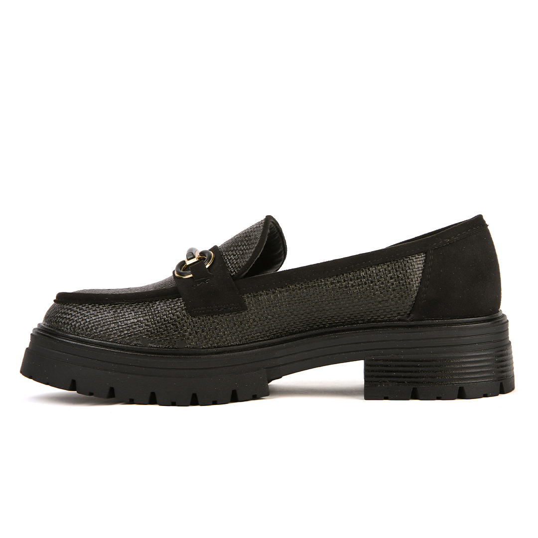 Αρχική σελίδα Παπούτσια Loafers Μαύρο γυναικείο loafer με ψάθα και διακοσμητικό