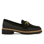 Αρχική σελίδα Παπούτσια Loafers Μαύρο γυναικείο μοκασίνι με συνδυασμό υλικών και διακοσμητικό