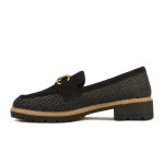 Μαύρο γυναικείο μοκασίνι με συνδυασμό υλικών και διακοσμητικό