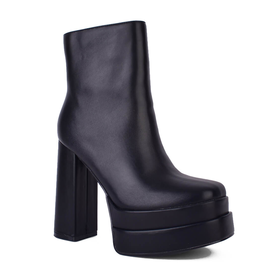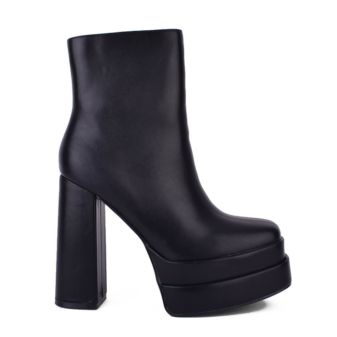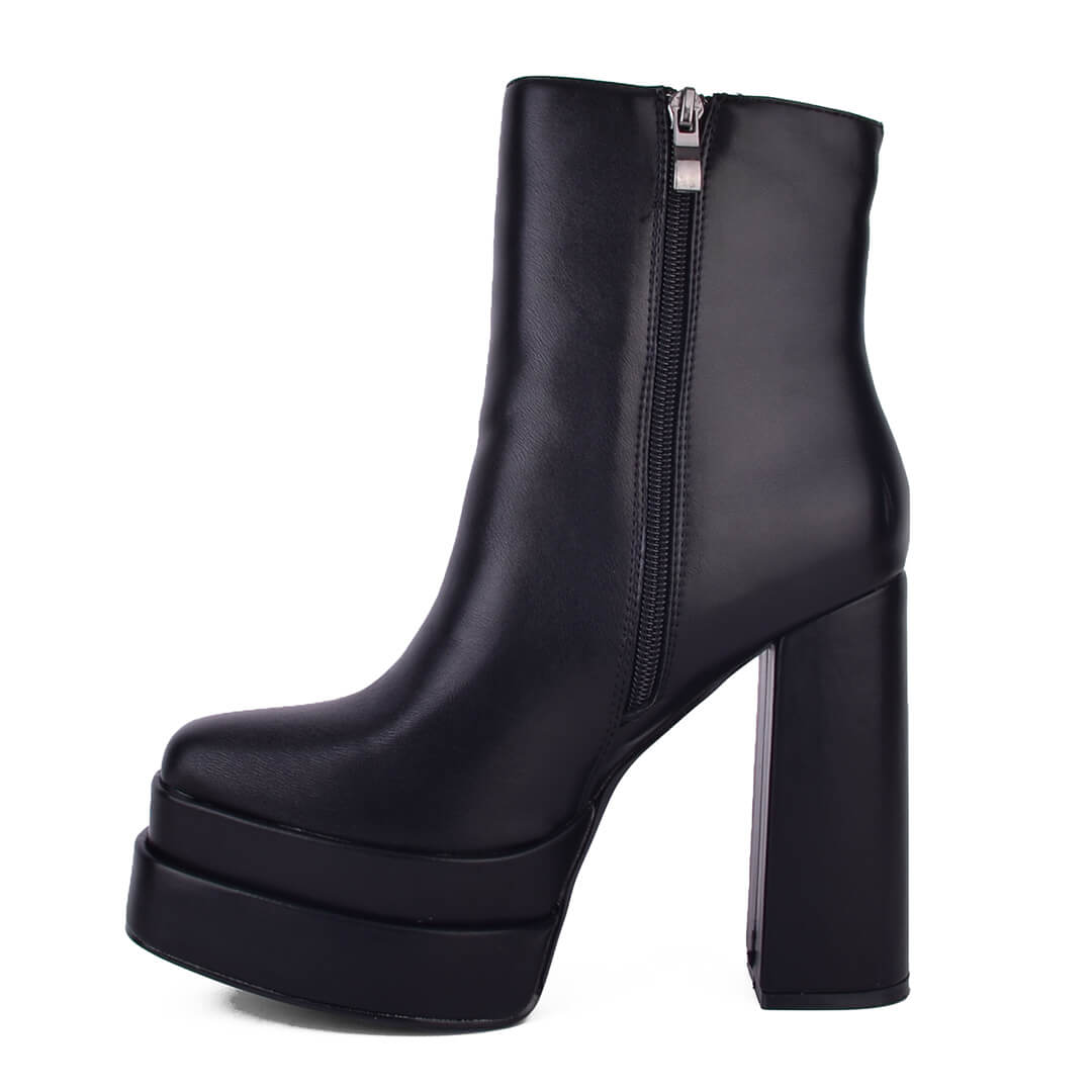 Μαύρο γυναικείο μποτάκι σε ματ αδιάβροχο υλικό. Διαθέτει λειτουργικό φερμουάρ στην εσωτερική πλευρά του.  Η φόρμα του είναι κανονική οπότε επιλέγουμε κανονικά το νούμερο μας. Το ύψος του τακουνιού είναι στους 12,5 πόντους με φιάπα μπροστά 4 πόντων. Το ύψος του στην γάμπα μας είναι 18 εκατοστά.