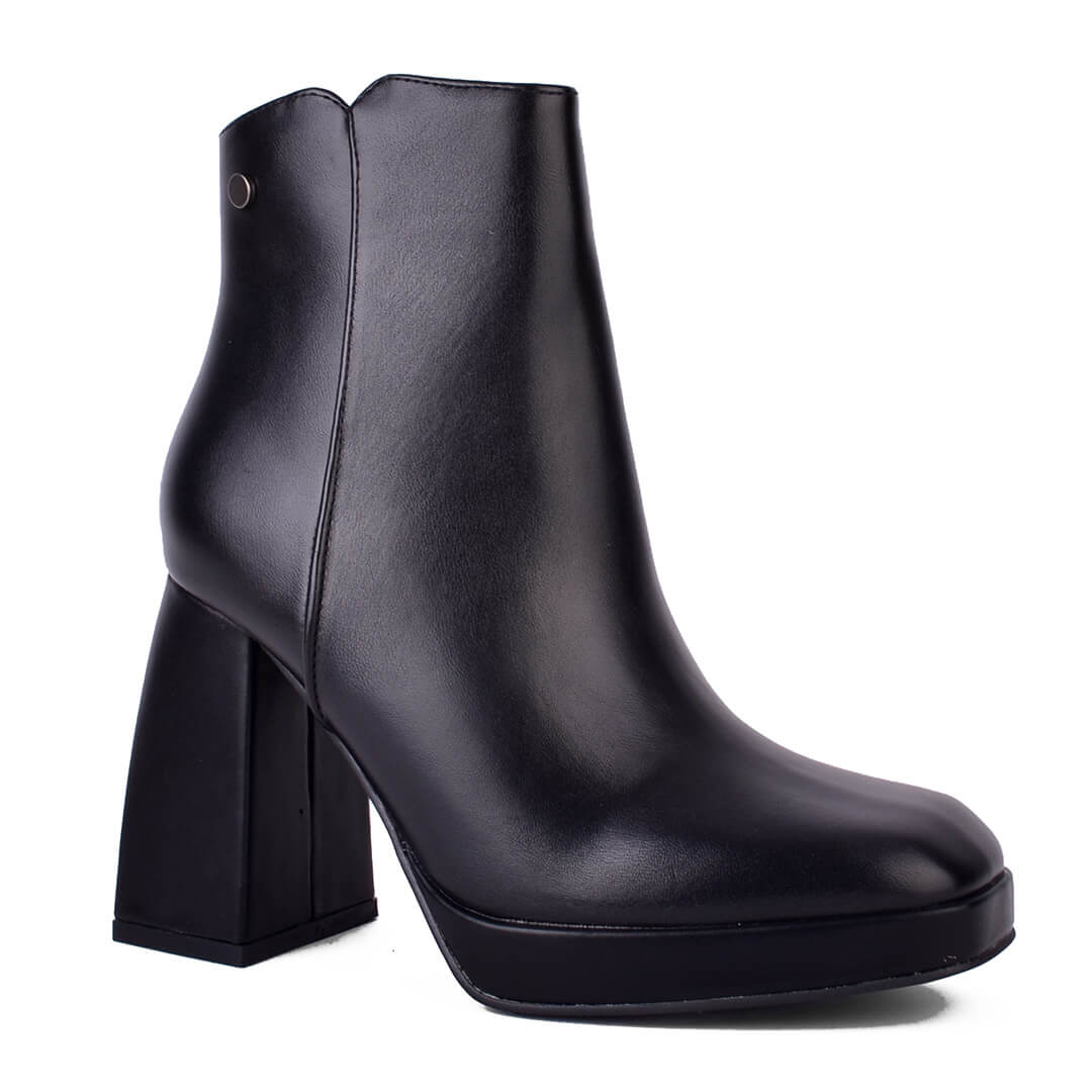 Μαύρο γυναικείο μποτάκι με φαρδύ τακούνι