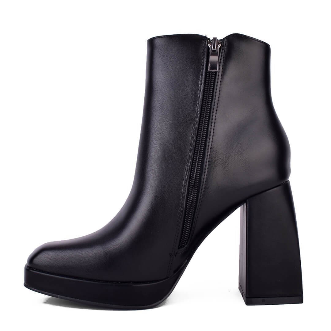 Μαύρο γυναικείο αδιάβροχο μποτάκι με τακούνι και εσωτερικό φερμουάρ. Η φόρμα του είναι κανονική, οπότε επιλέγουμε κανονικά το νούμερό μας. Το τακούνι του είναι 9,5 εκατοστά με φιάπα μπροστά 2 εκατοστά. Το ύψος του στην γάμπα είναι 12 εκατοστά.