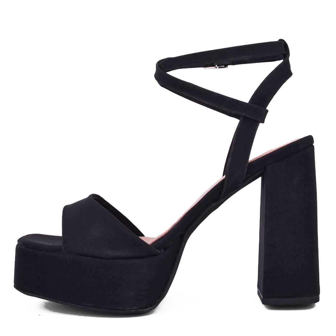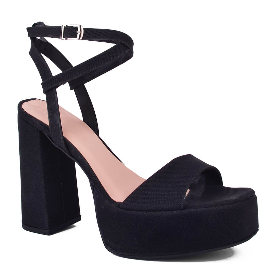 Αρχική σελίδα Παπούτσια Πέδιλα με τακούνι Μαύρο γυναικείο πέδιλο με φιάπα και χιαστί φτέρνα