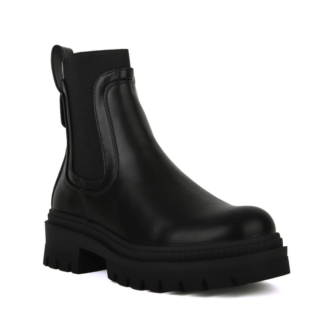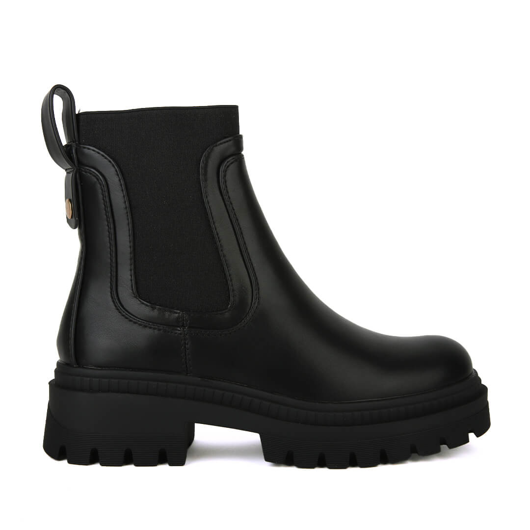Μαύρο γυναικείο τρακτερωτό μποτάκι με λάστιχο