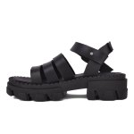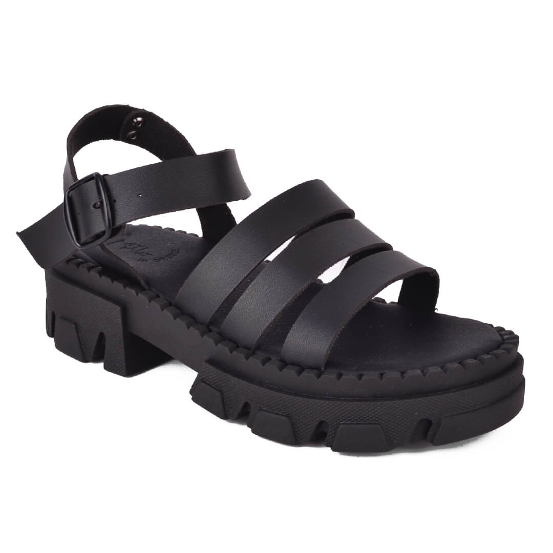 Μαύρο γυναικείο τρακτερωτό πέδιλο με λωρίδες