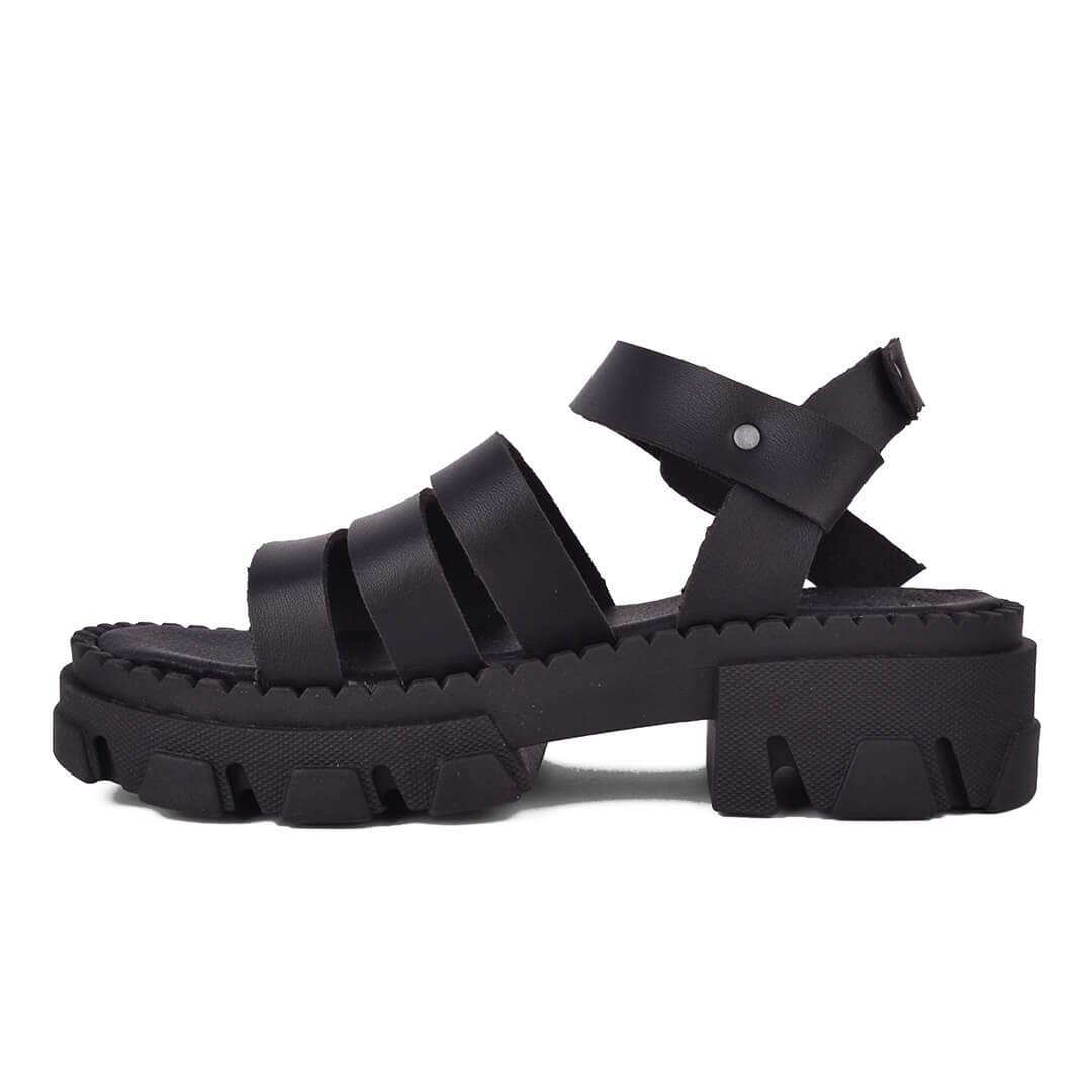 Αρχική σελίδα Παπούτσια Flatforms Μαύρο γυναικείο τρακτερωτό πέδιλο με λωρίδες