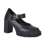Μαύρο ματ γυναικείο mary jane με τακούνι και διπλά λουράκια