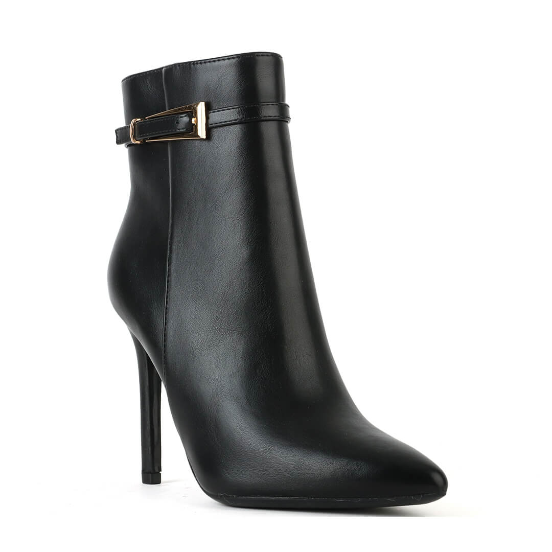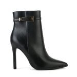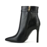 Μαύρο ματ γυναικείο μποτάκι με λεπτό τακούνι και διακοσμητικό