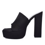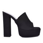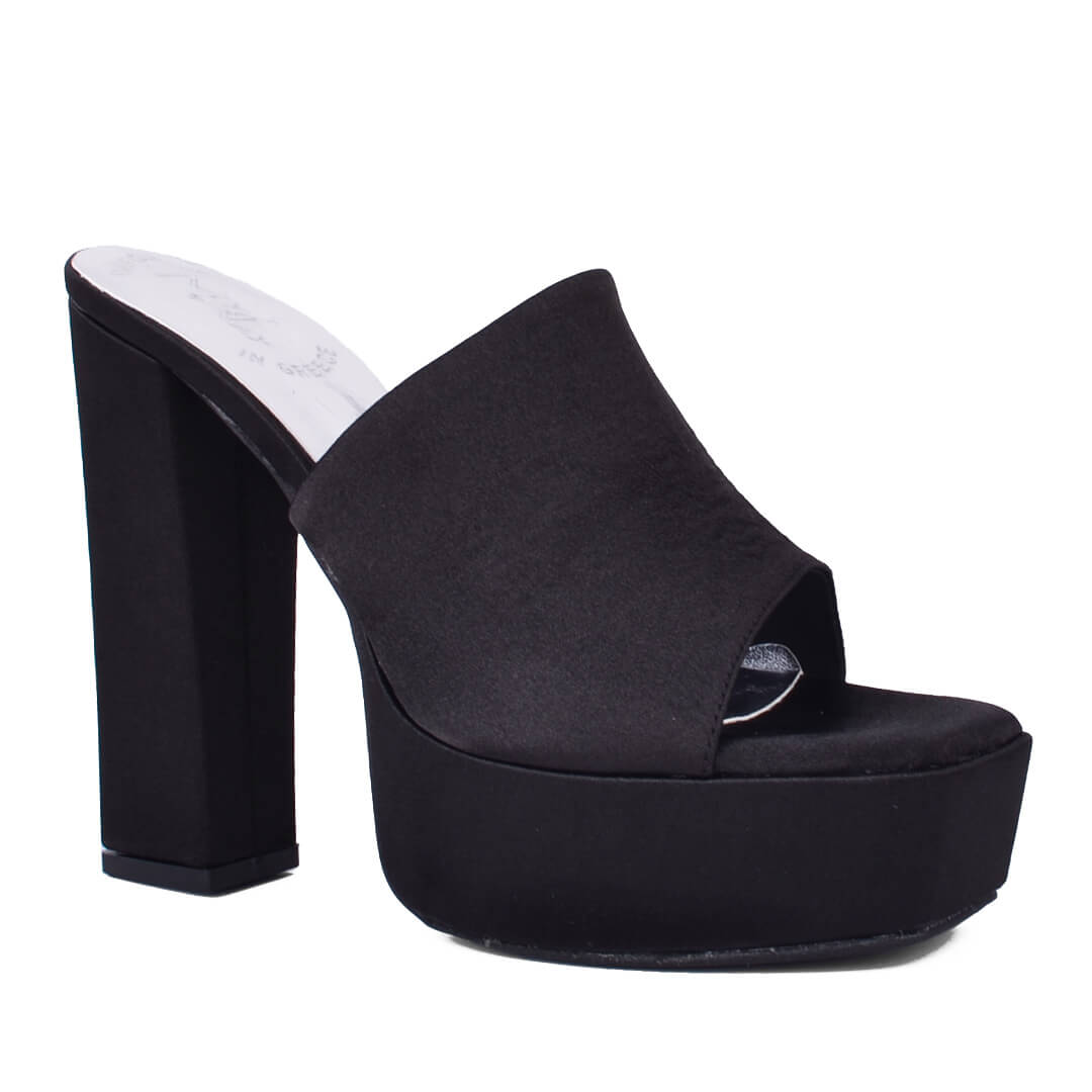 Μαύρο σατέν γυναικείο mule με φιάπα και τακούνι