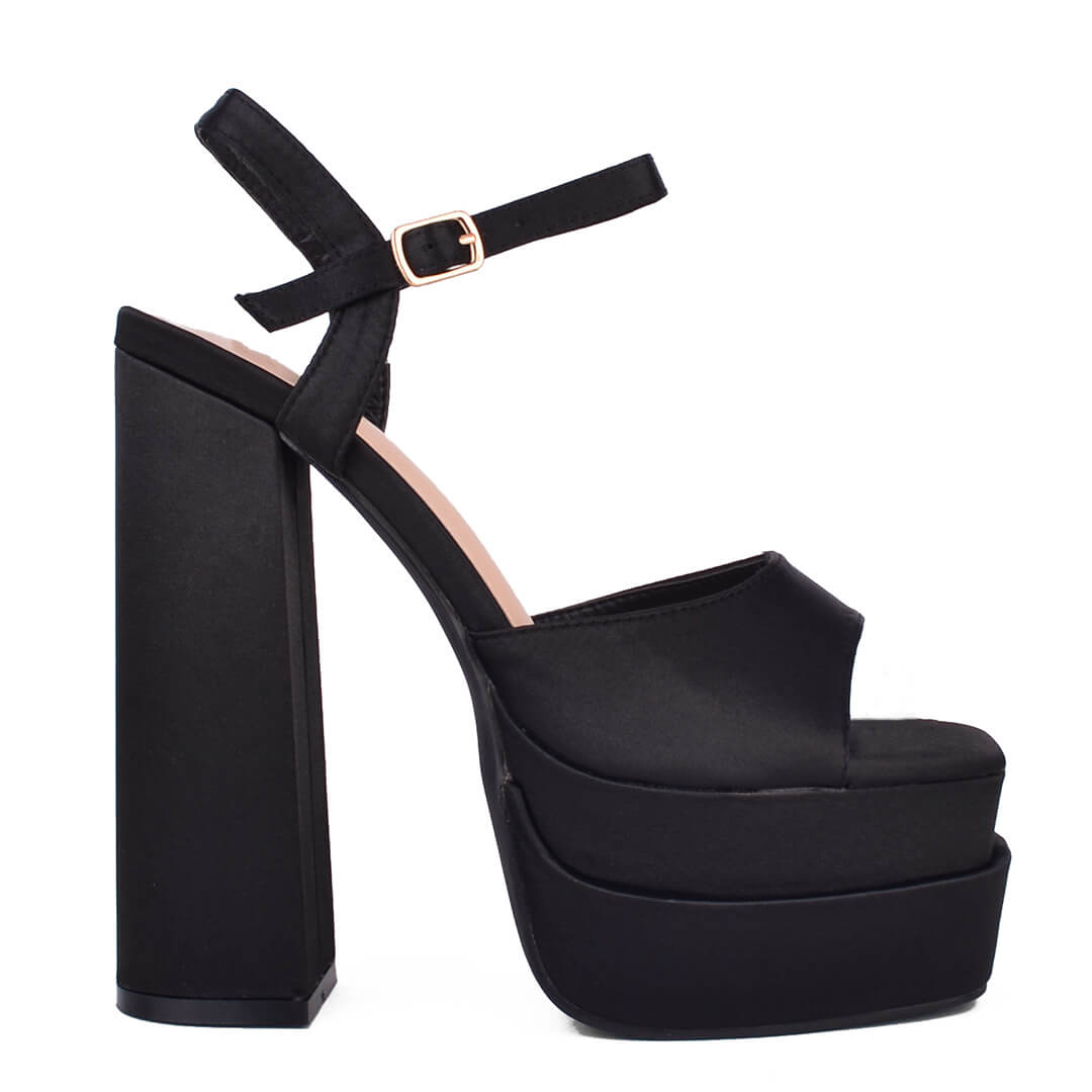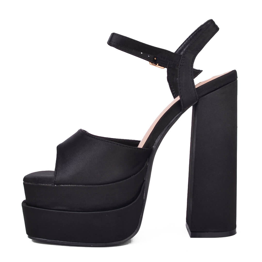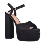 Γυναικεία μαύρο σατέν πέδιλο με διπλή φιάπα και λουράκι. Η φόρμα του είναι κανονική οπότε επιλέγουμε κανονικά το νούμερο μας. Το ύψος του τακουνιού είναι στους 14,5 πόντους με φιάπα μπροστά στους 5 πόντους. Εντυπωσιακό και κομψό πέδιλο που θα απογειώσει την εμφάνισή σου.