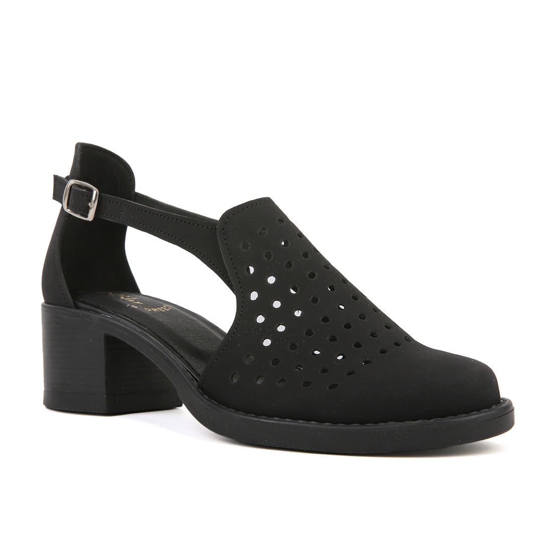 Μαύρο τρυπητό μποτάκι με τακούνι