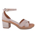 Μπεζ ανατομικό πέδιλο με χιαστί λουράκια