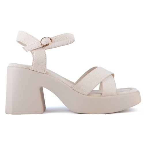 Μπεζ καστώρ γυναικείο πέδιλο με χιαστι λουράκια