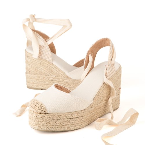 Γυναικεία εσπαντρίγια με κορδόνια. Η φόρμα της είναι κανονική, οπότε επιλέγουμε κανονικά του νούμερό μας. Κατασκευασμένη με καστώρ ελαστικά υλικά αγκαλιάζει και προσαρμόζεται ακριβώς πάνω στο πόδι μας. Η σόλα τους είναι στα 10 εκατοστά πίσω και 4 εκατοστά μπροστά. Ιδανική επιλογή για ανοιξιάτικες εμφανίσεις.