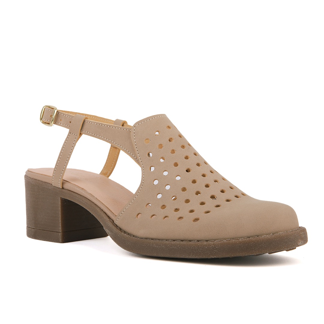 Μπεζ open-heel τρυπητό μποτάκι με τακούνι