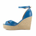 Μπλε ψηλή πλατφόρμα με χιαστί λουράκια