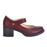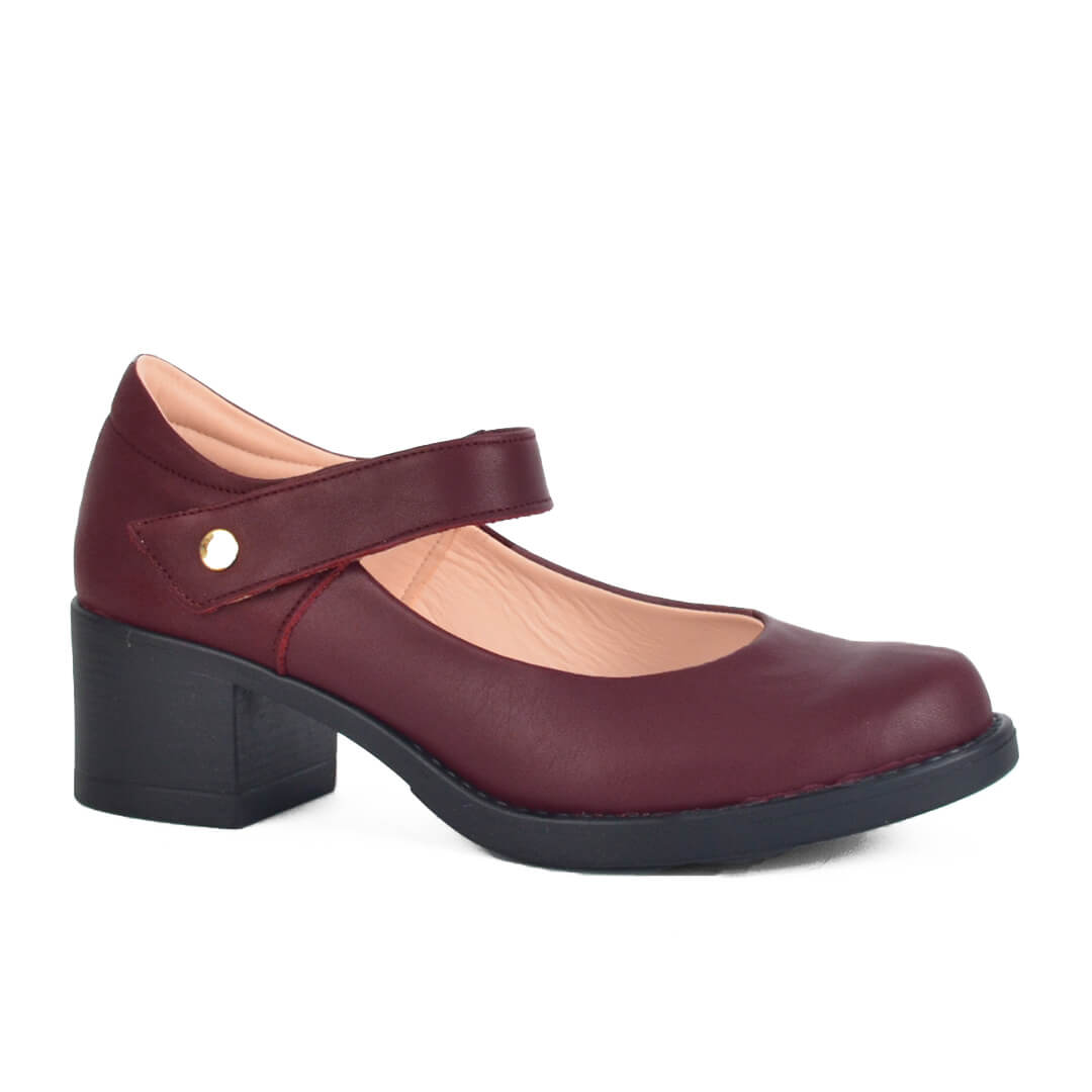 Μπορντό δερμάτινο ανατομικό παπούτσι με χρατς και τακούνι