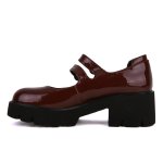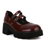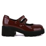 Μπορντό λουστρίν γυναικείο mary jane με διπλό λουράκι στο κουτεπιέ