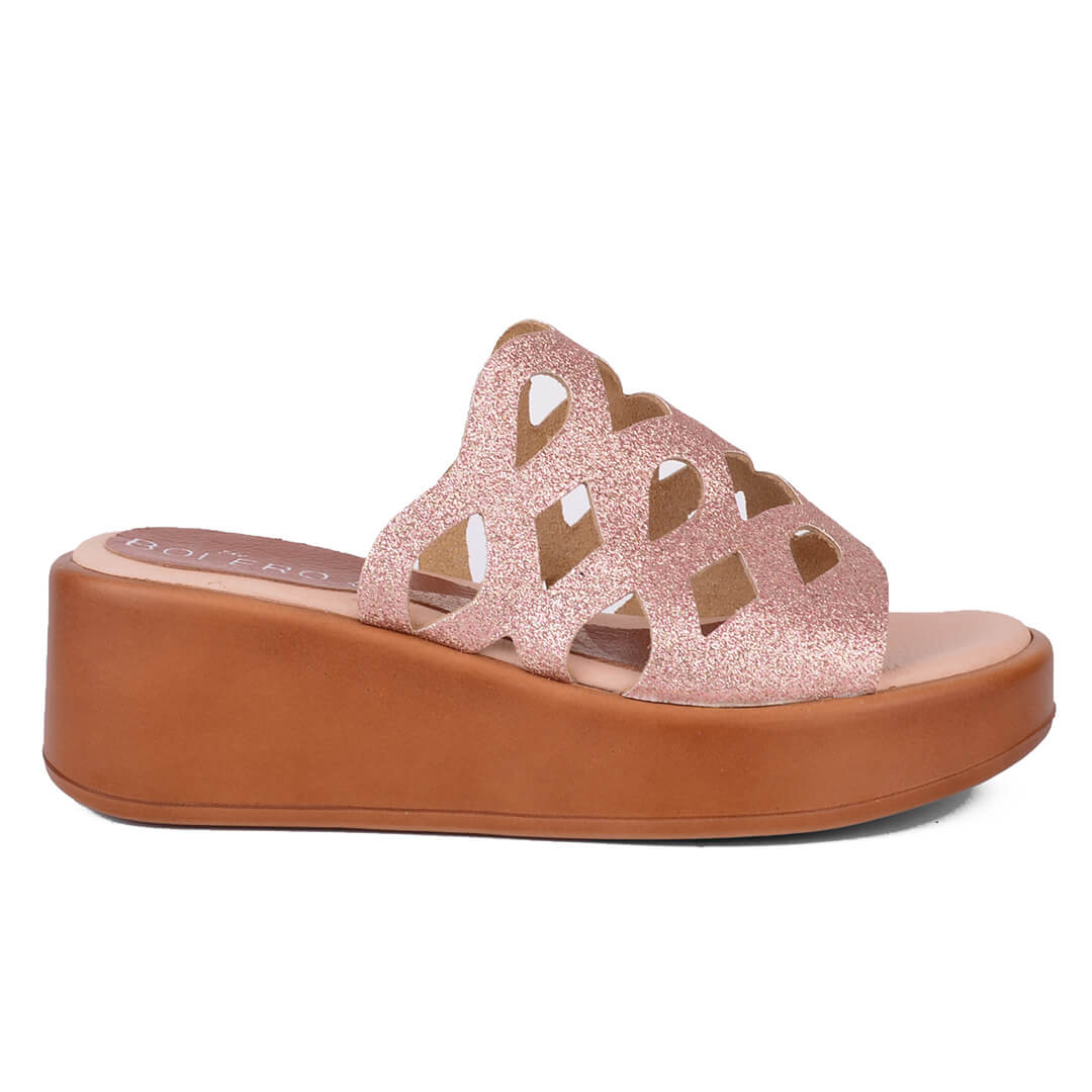 Ροζ χρυση ανατομική τρυπητή δερμάτινη παντόφλα