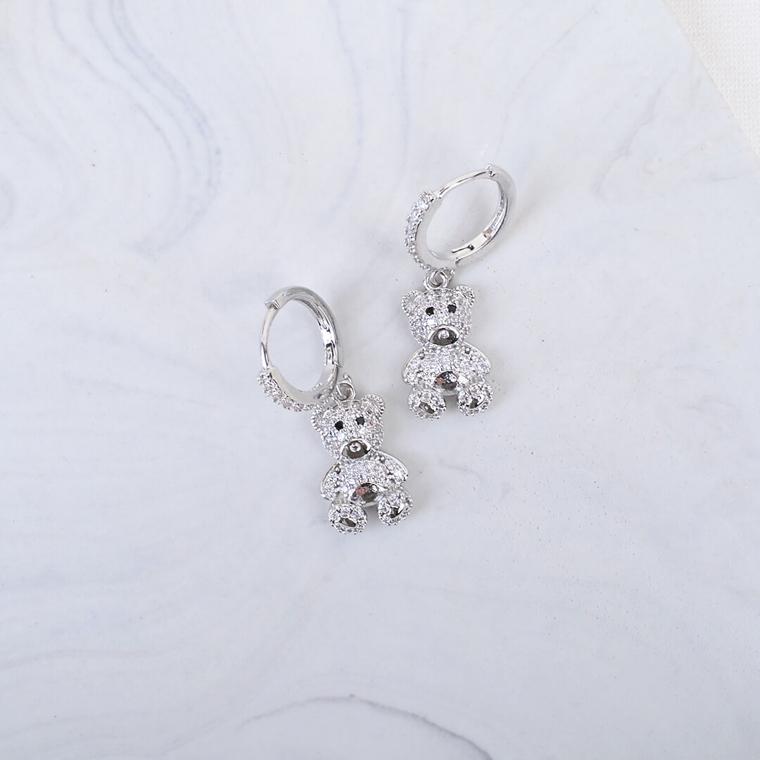 Σκουλαρίκια μικροί κρίκοι με αρκουδάκι από ζιρκόν. Συνδύασε τα με τα υπόλοιπα της συλλογής και φτιάξε το δικό σου ear-layering.