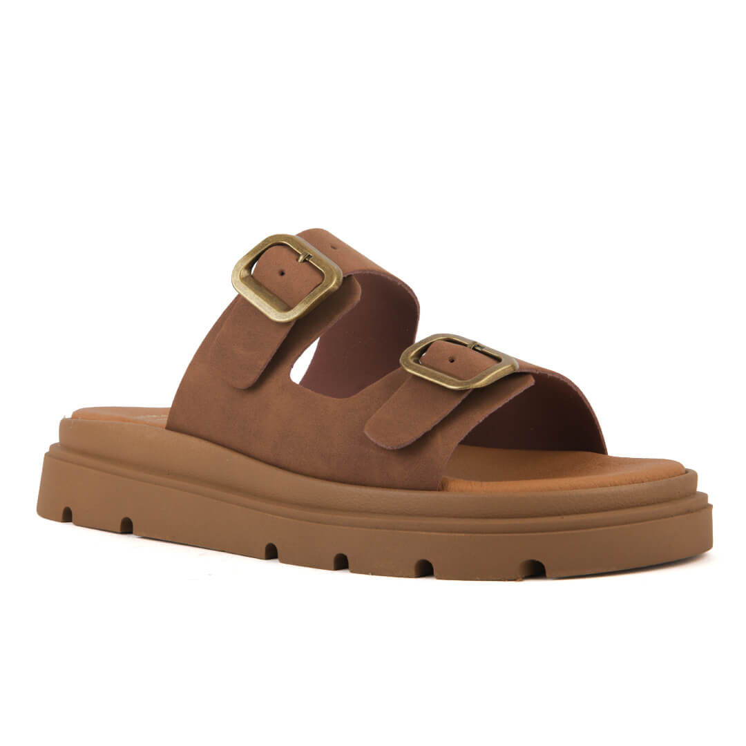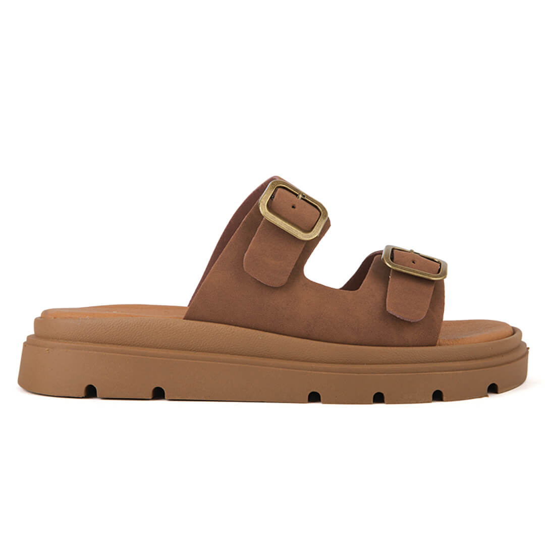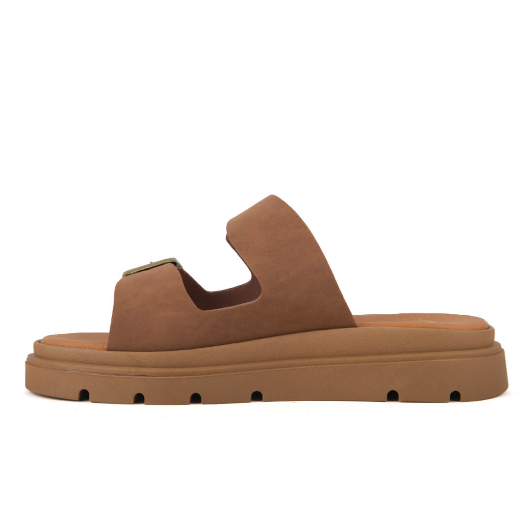 Flatform παντόφλα με διπλές τόκες, κατασκευής εργοστασίου μας. Η φόρμα τους είναι κανονική οπότε επιλέγουμε το νούμερο μας. Η σόλα τους είναι στα 3 εκατοστά και το υλικό της είναι θερμολάστιχο με αποτέλεσμα να είναι πολύ ελαφριά και άνετη στο περπάτημα. Ο πάτος τους είναι ενισχυμένος για πάρα πολύ μαλακό πάτημα. Ιδανική επιλογή για όλη την ημέρα